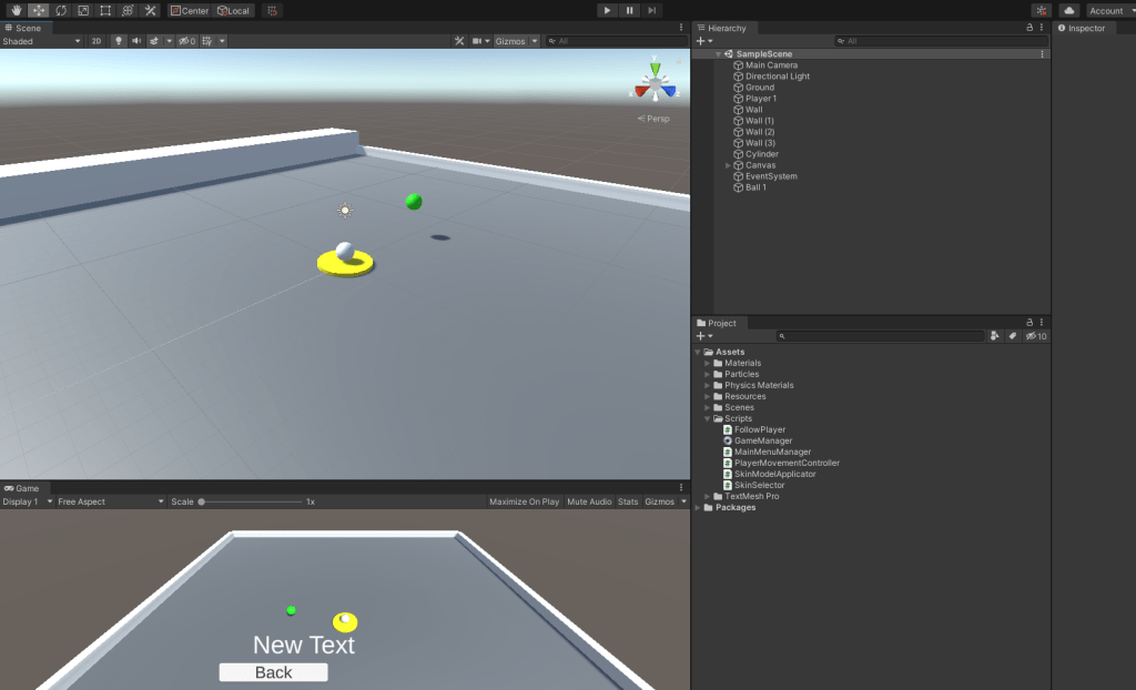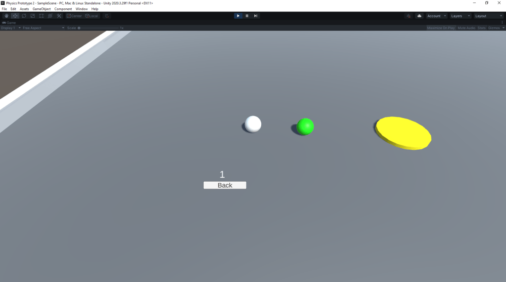 This means that when stationary, the first movement is sharp, but the rest slowly build up to a max speed. This allowed the player to build up momentum, but still be able to change directions and reaction to stimuli quickly. The result is a simple movement system that satisfies the casual audience by only using “WASD” or a joystick to move, but facilitating moment-to-moment decision-making based on the risk vs reward of speeding up and hitting with more force, or slowing down and having more control. The prototype also includes a primitive saving system as well a skin selector for the marble under the “Collection” tab.