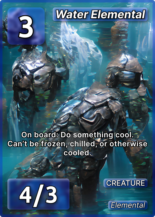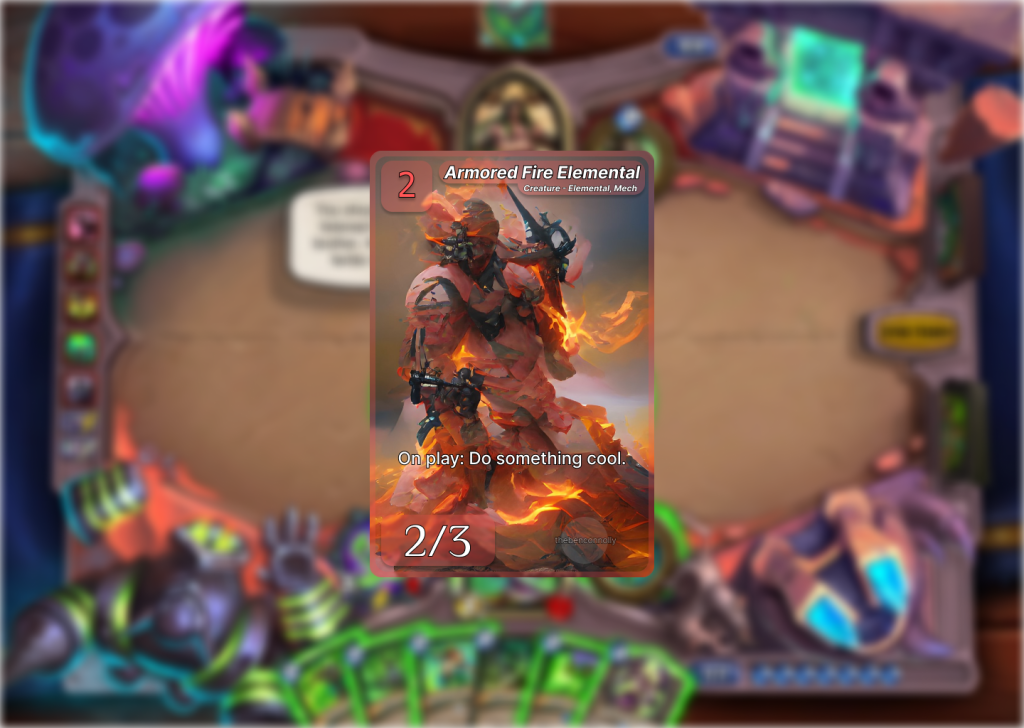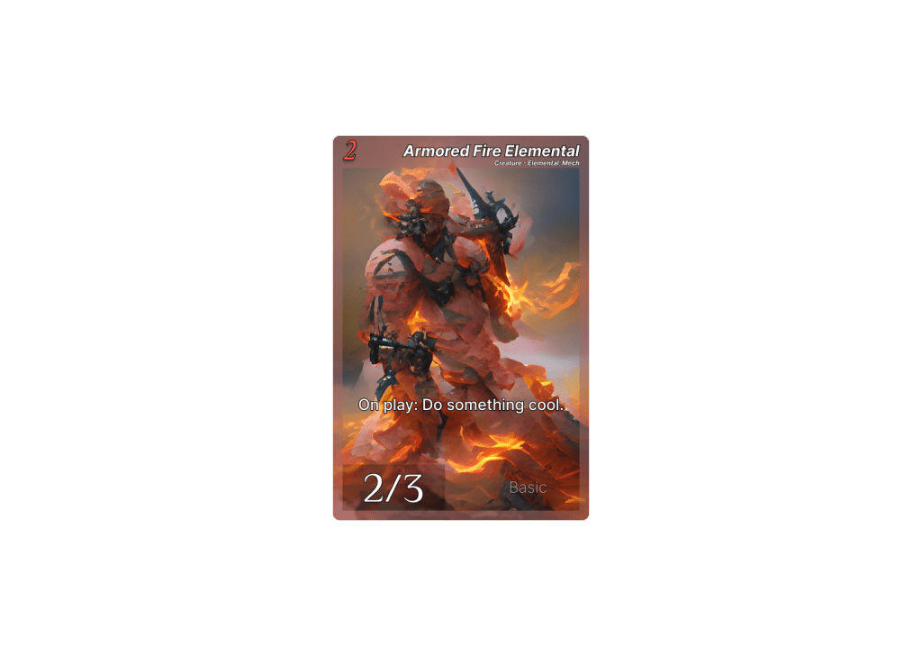 I lost sight of the fact that this project was supposed to be “digital-first” not just “digital”. There’s a difference. The project is supposed to allow for physical cards to be printed. Whether for promotional or commercial purposes. The other issue with the animated designs is that viewing the cards in a collection viewer becomes more taxing. Either the player has to scroll over ever card to see its effect or they check a toggle and ever card is flooded with info and the art is all covered, just so the player can see the card effects.